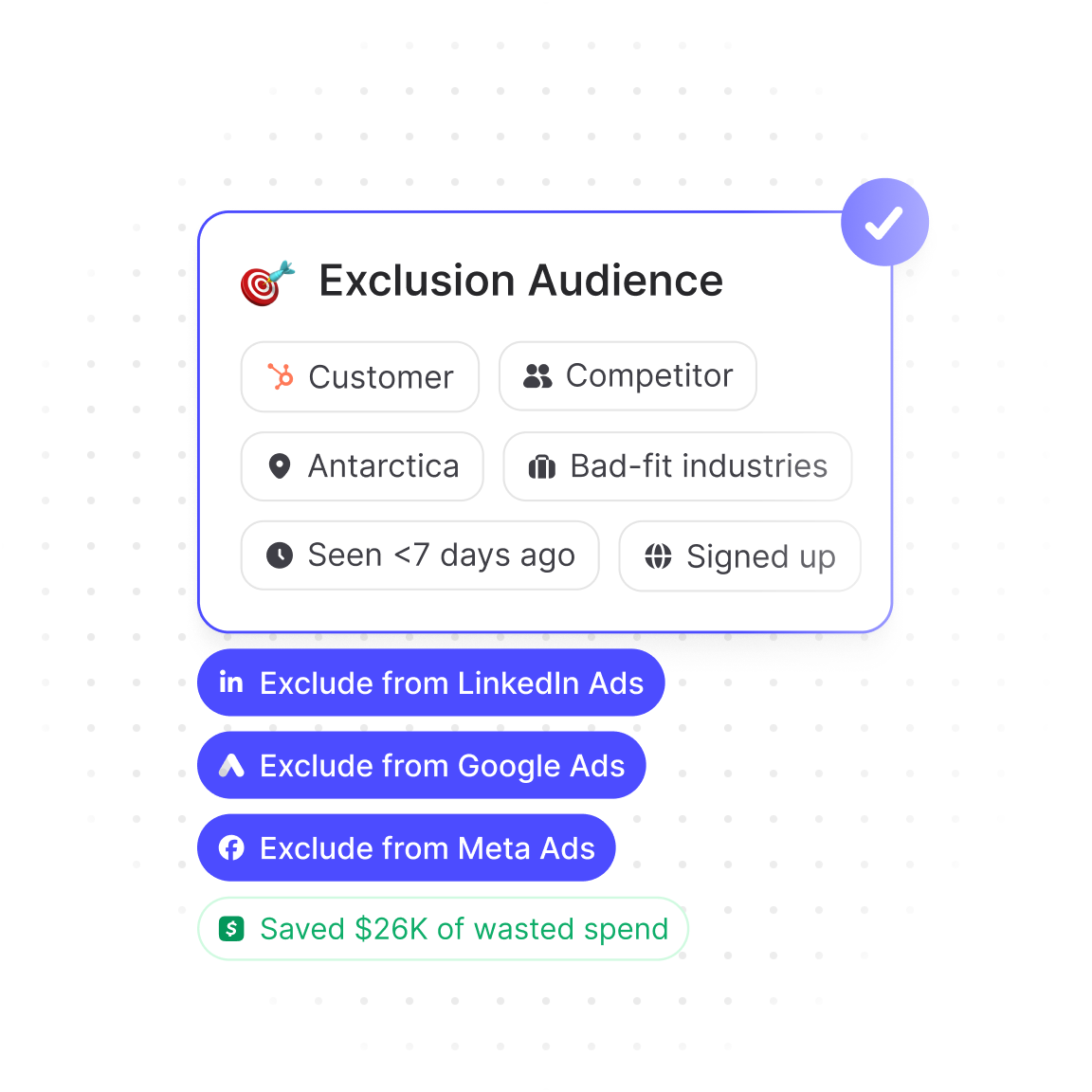 Stop spending on accounts that will never buy. Push ICP to your ad platforms, suppress the rest, and watch wasted spend disappear.