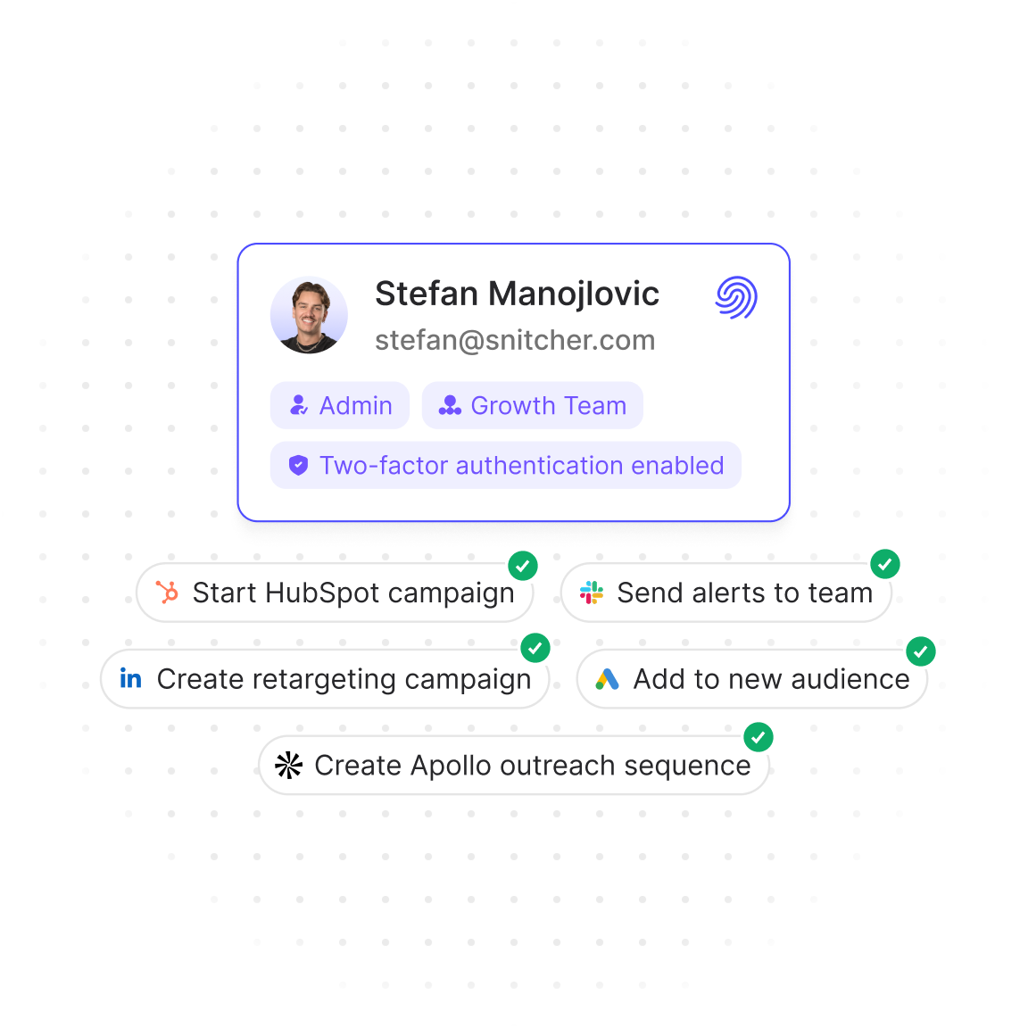 Snitcher plugs into your tools so data, signals and workflows move seamlessly between every system you use.